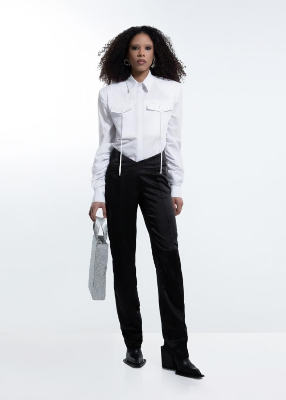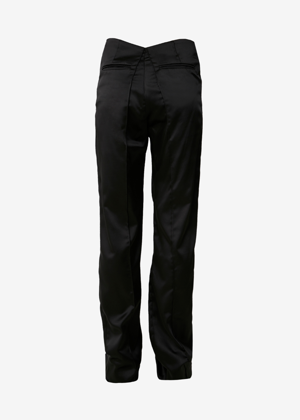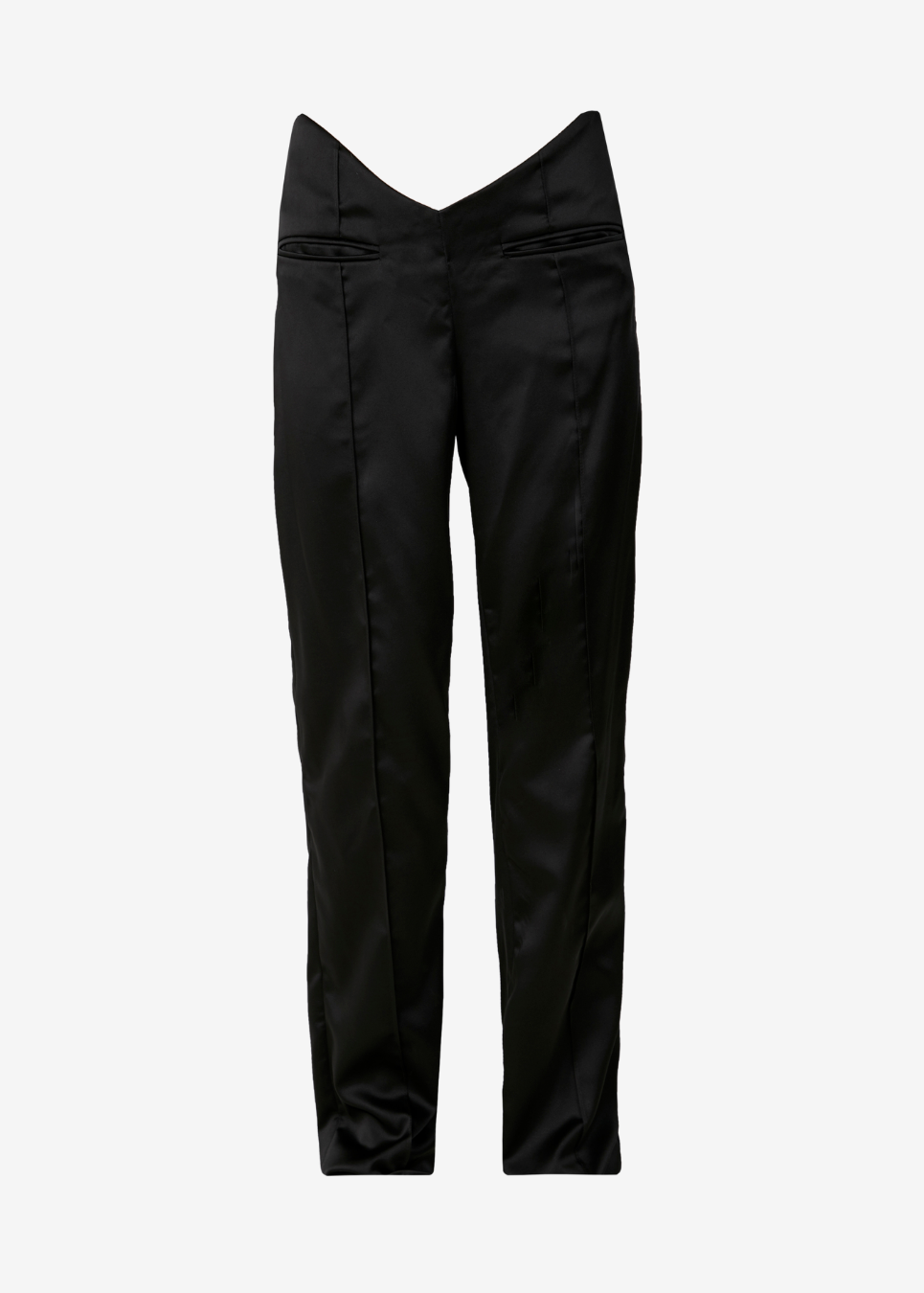 Straight-leg pants with a v-cut on the waist.