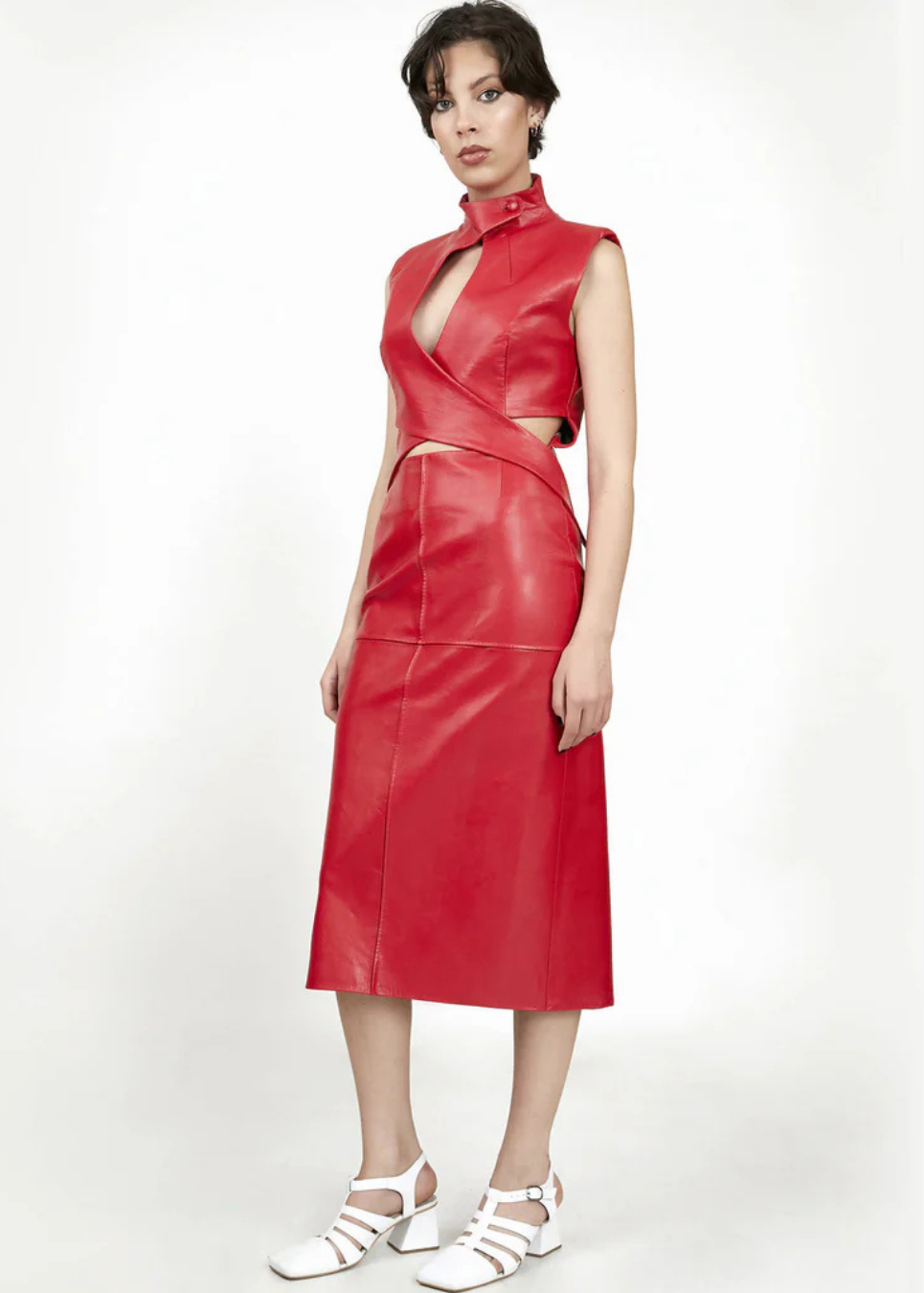 Sleeveless Red Faux Leather Dress