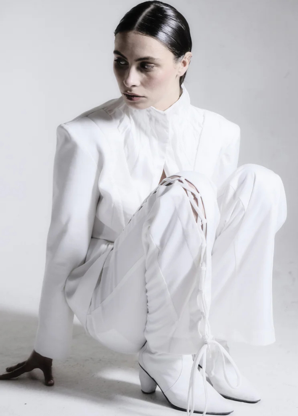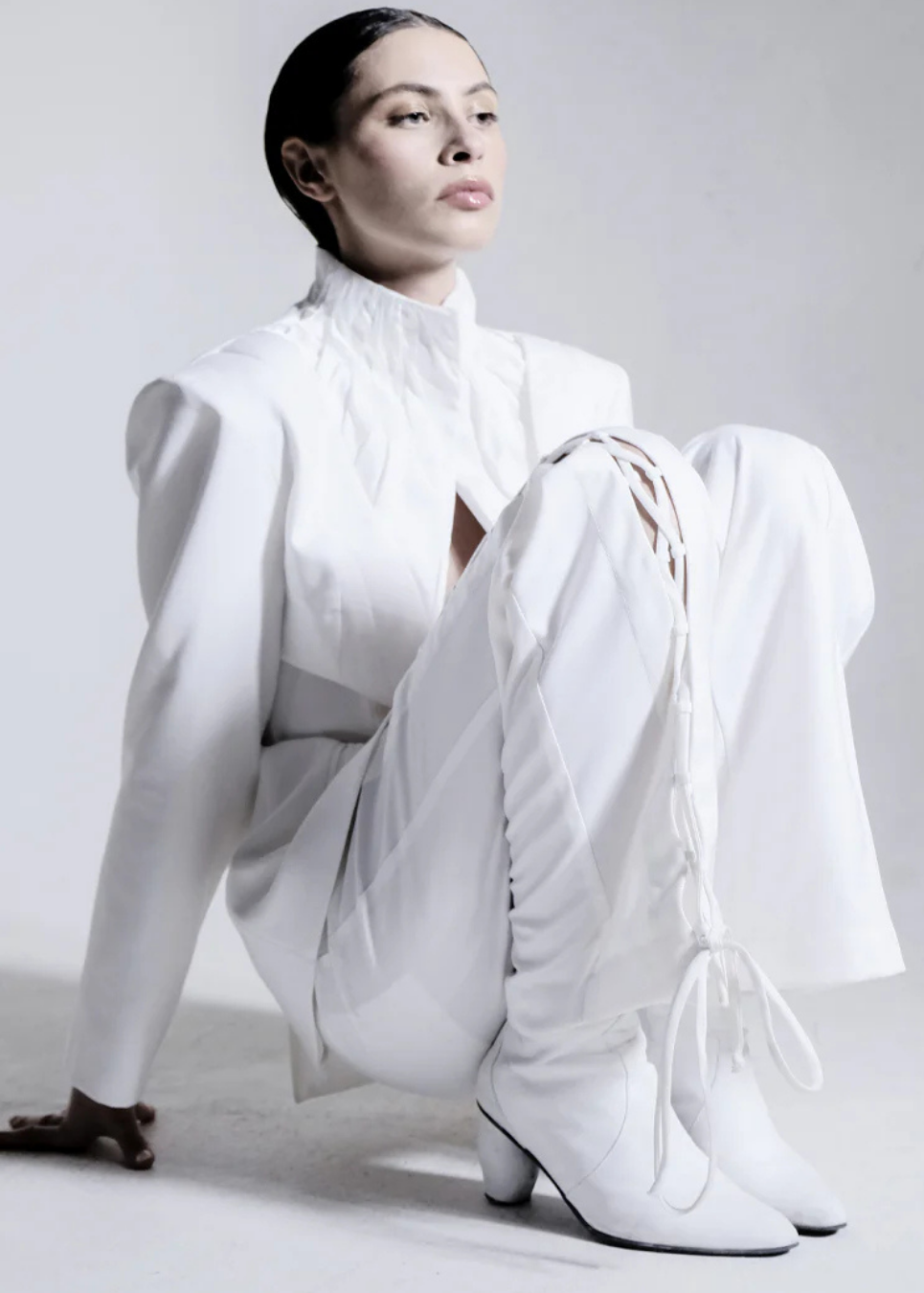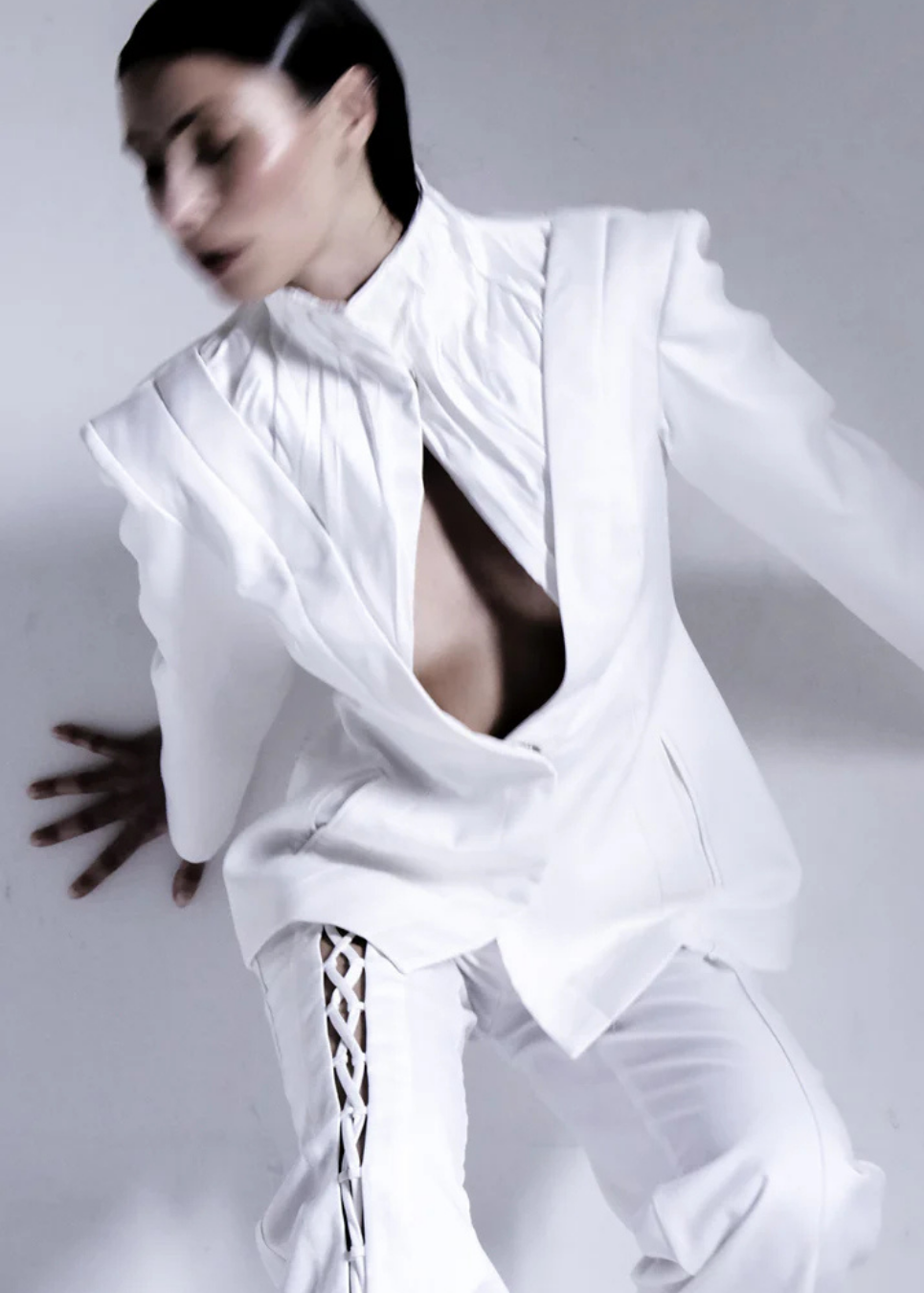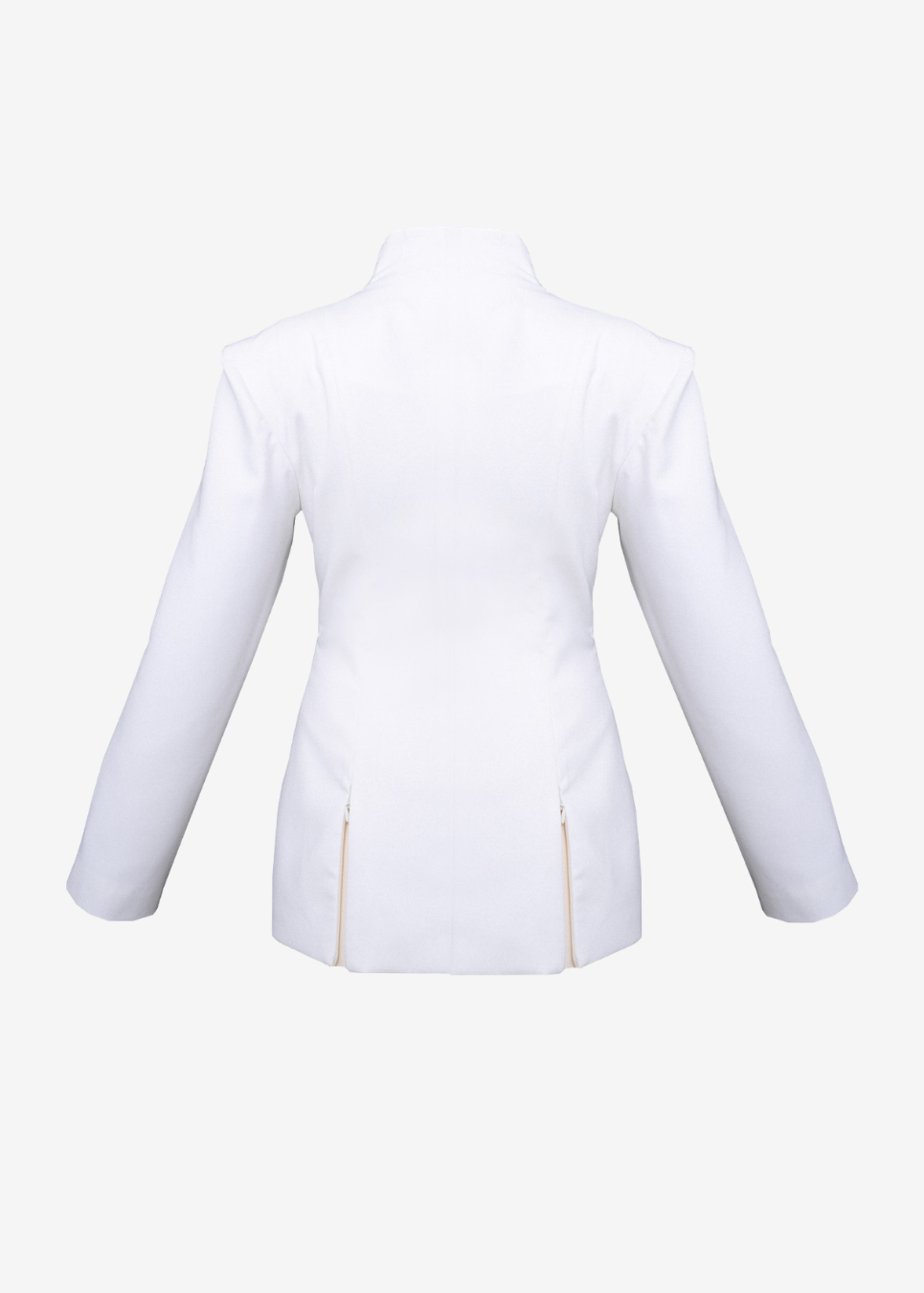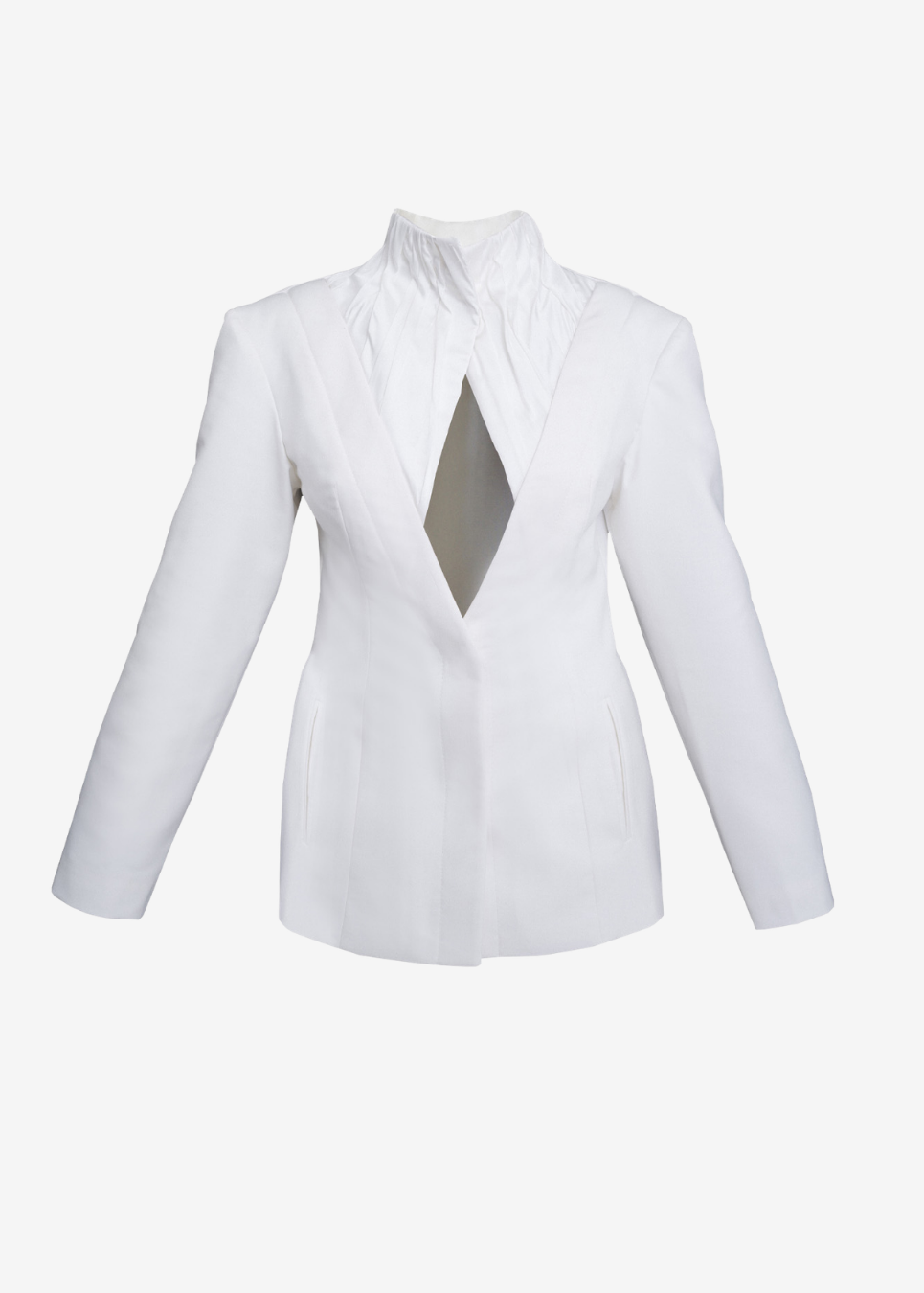 High-neck Pleated White Blazer
