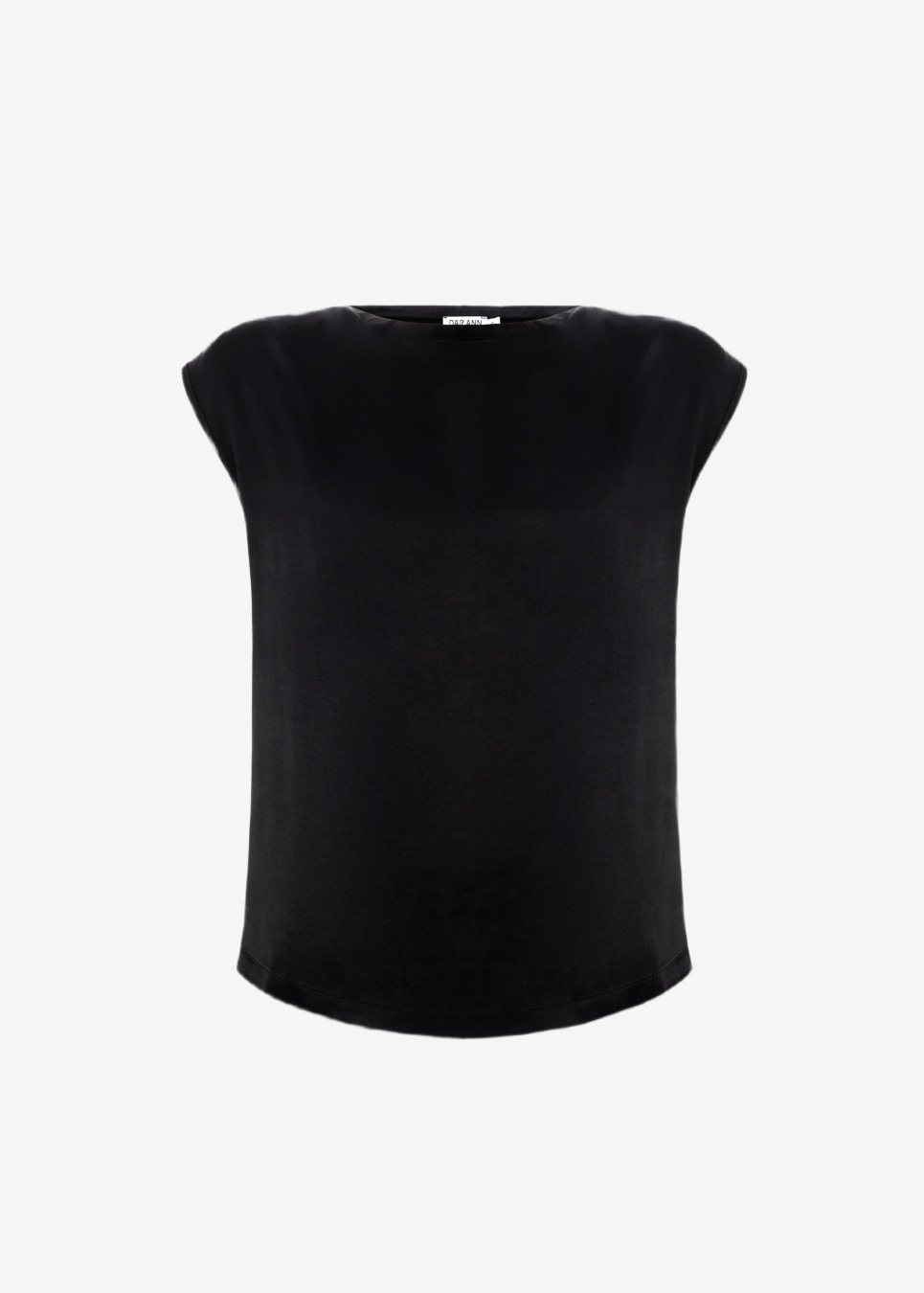 Sleeveless draped trop designed with soft folds and a satin finish.