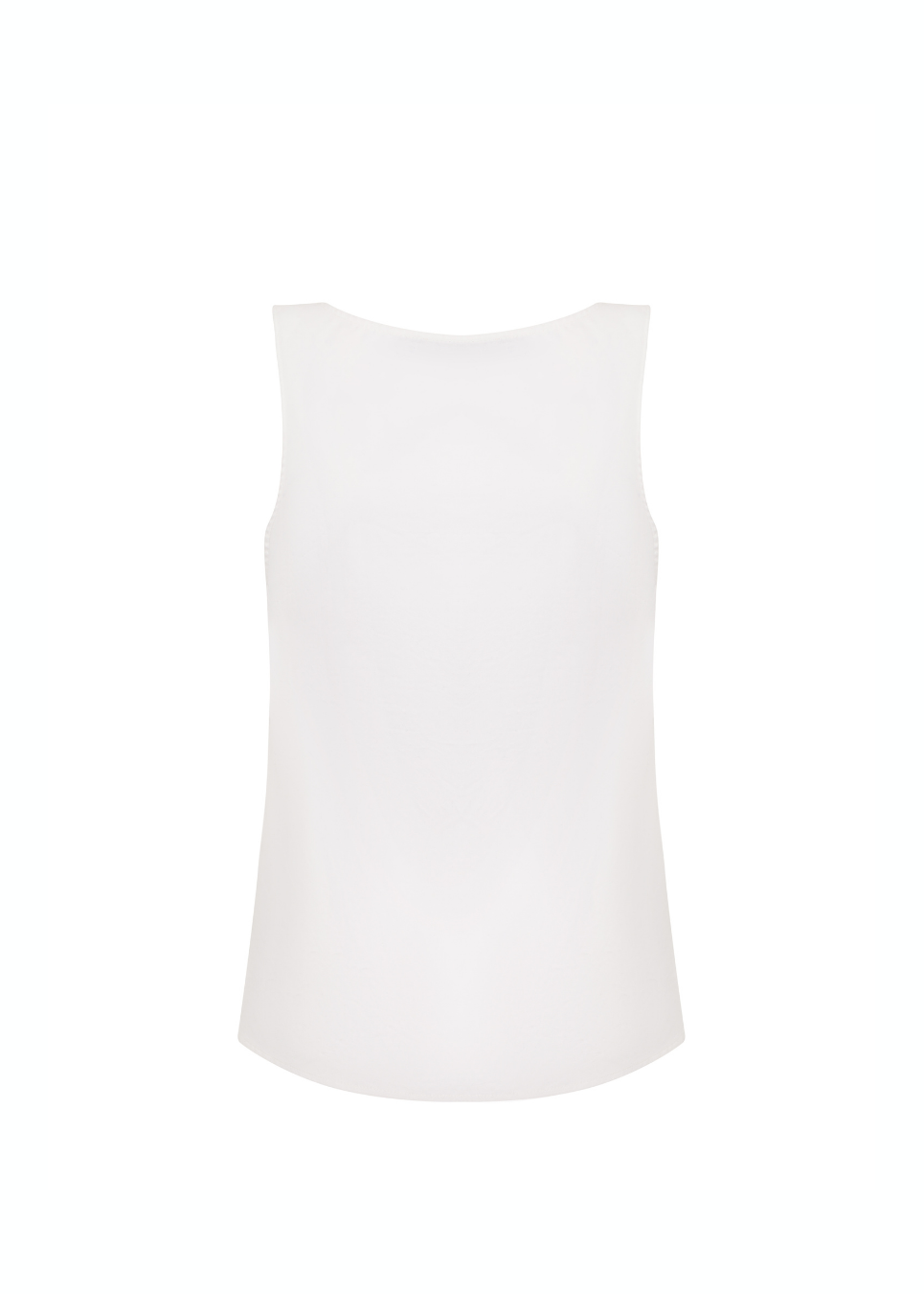 Sleeveless draped trop designed with soft folds and a satin finish.