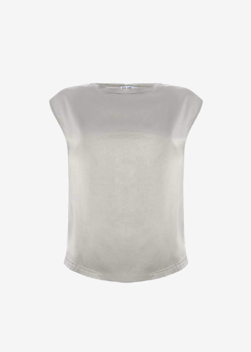 Sleeveless draped trop designed with soft folds and a satin finish.