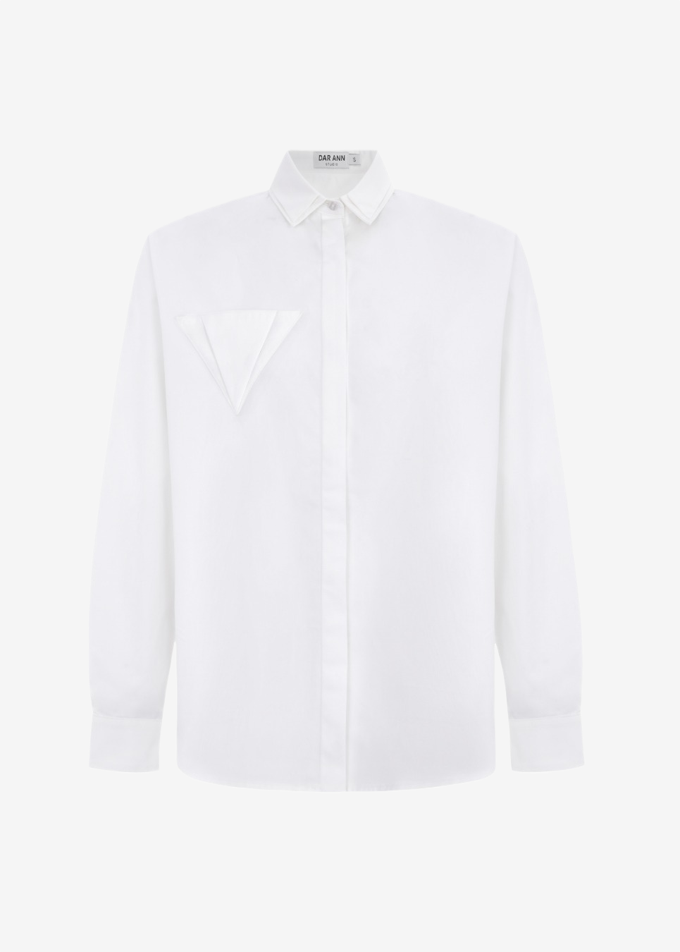 Slightly oversized long-sleeve cotton shirt with a shellfish-inspired pocket and a double collar.