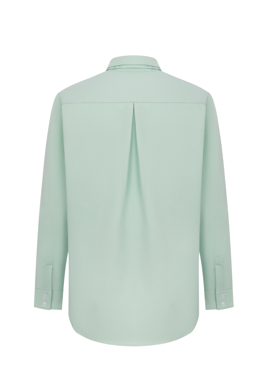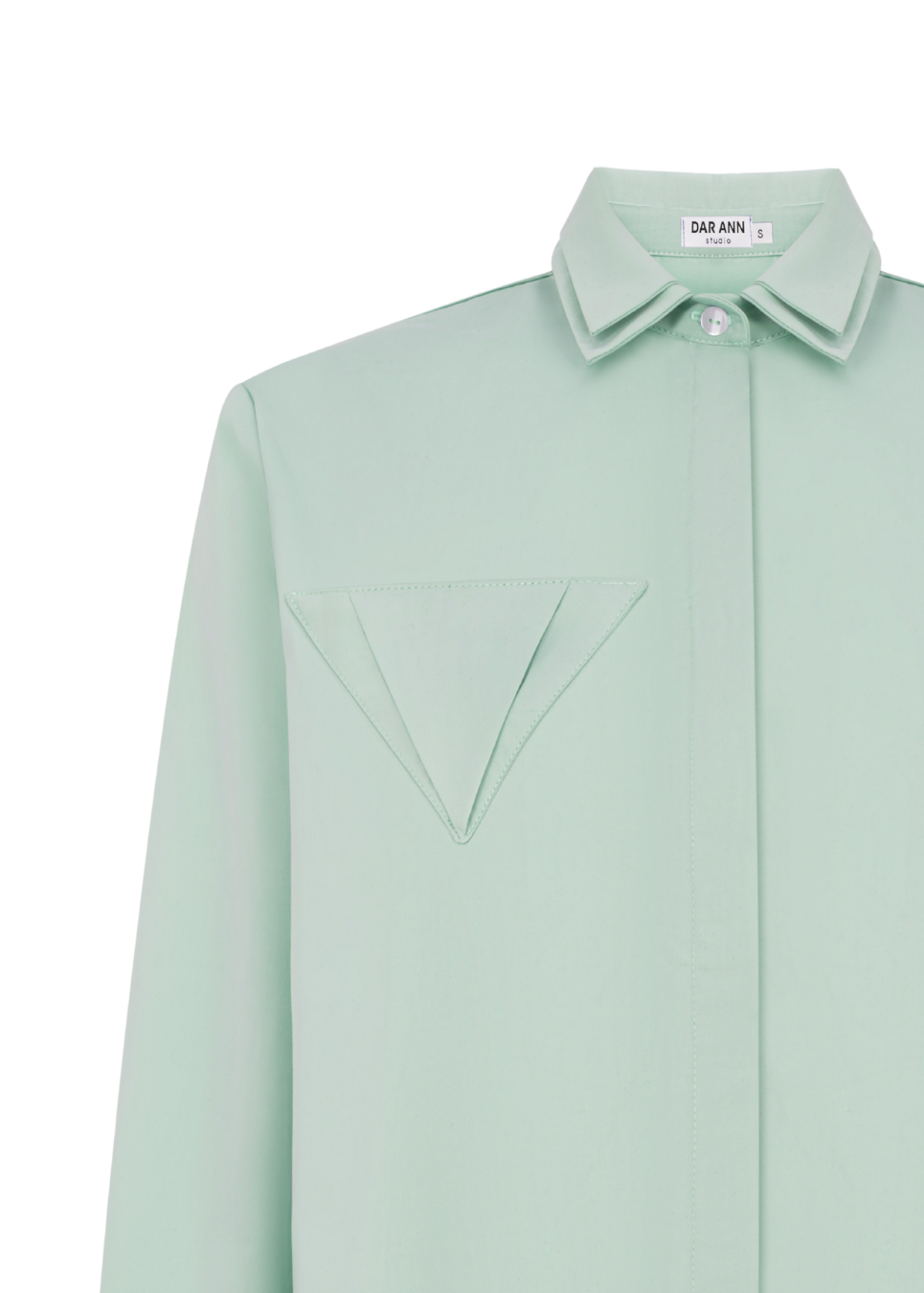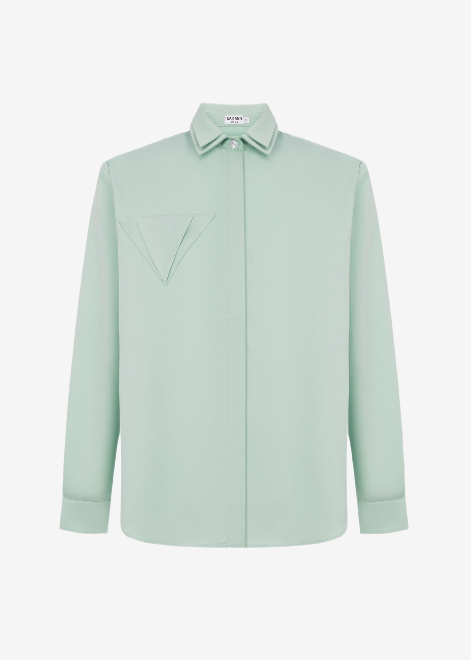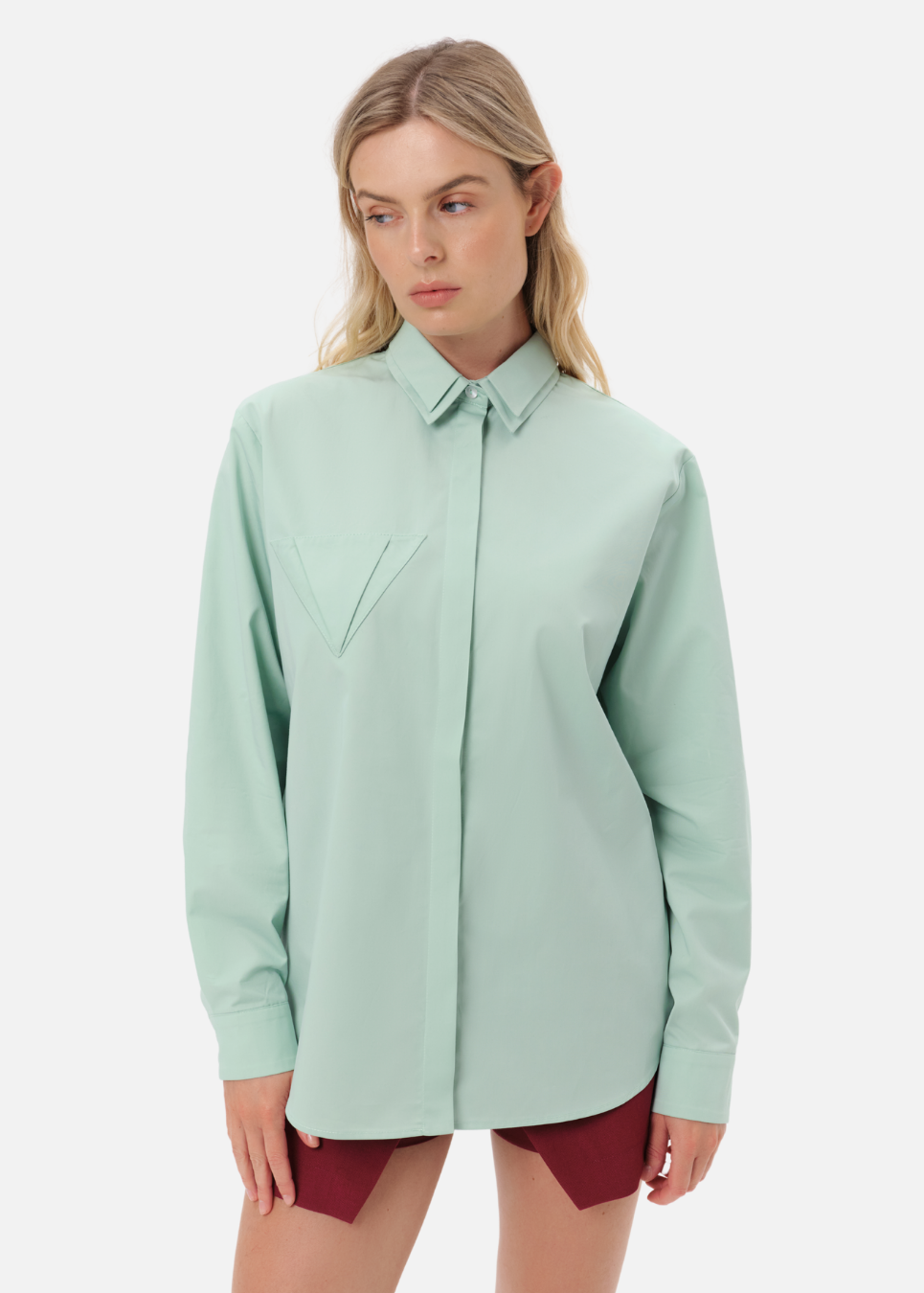 Slightly oversized long-sleeve cotton shirt with a shellfish-inspired pocket and a double collar.