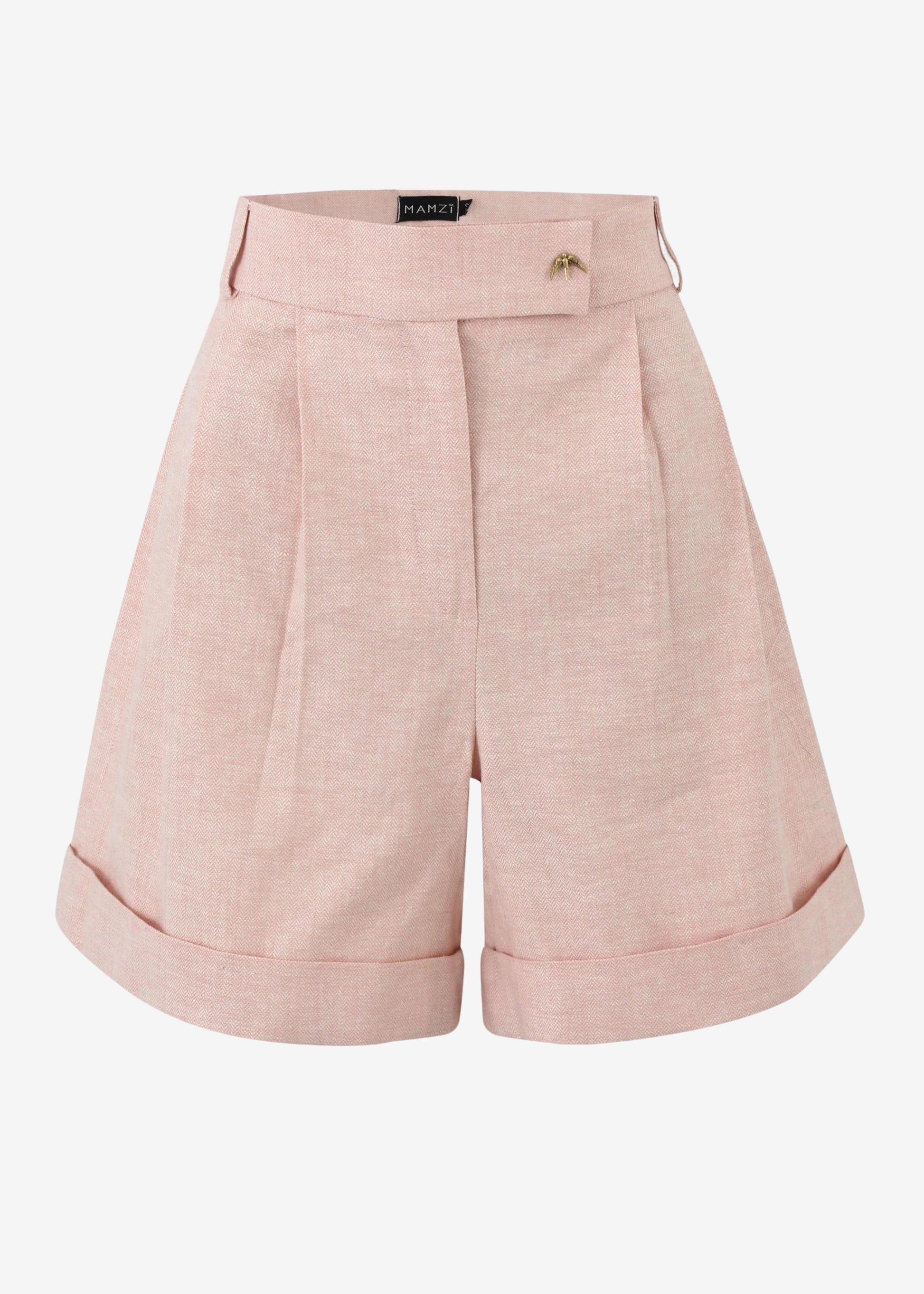 High-rise tailored shorts featuring a structured fit and rolled cuffs.