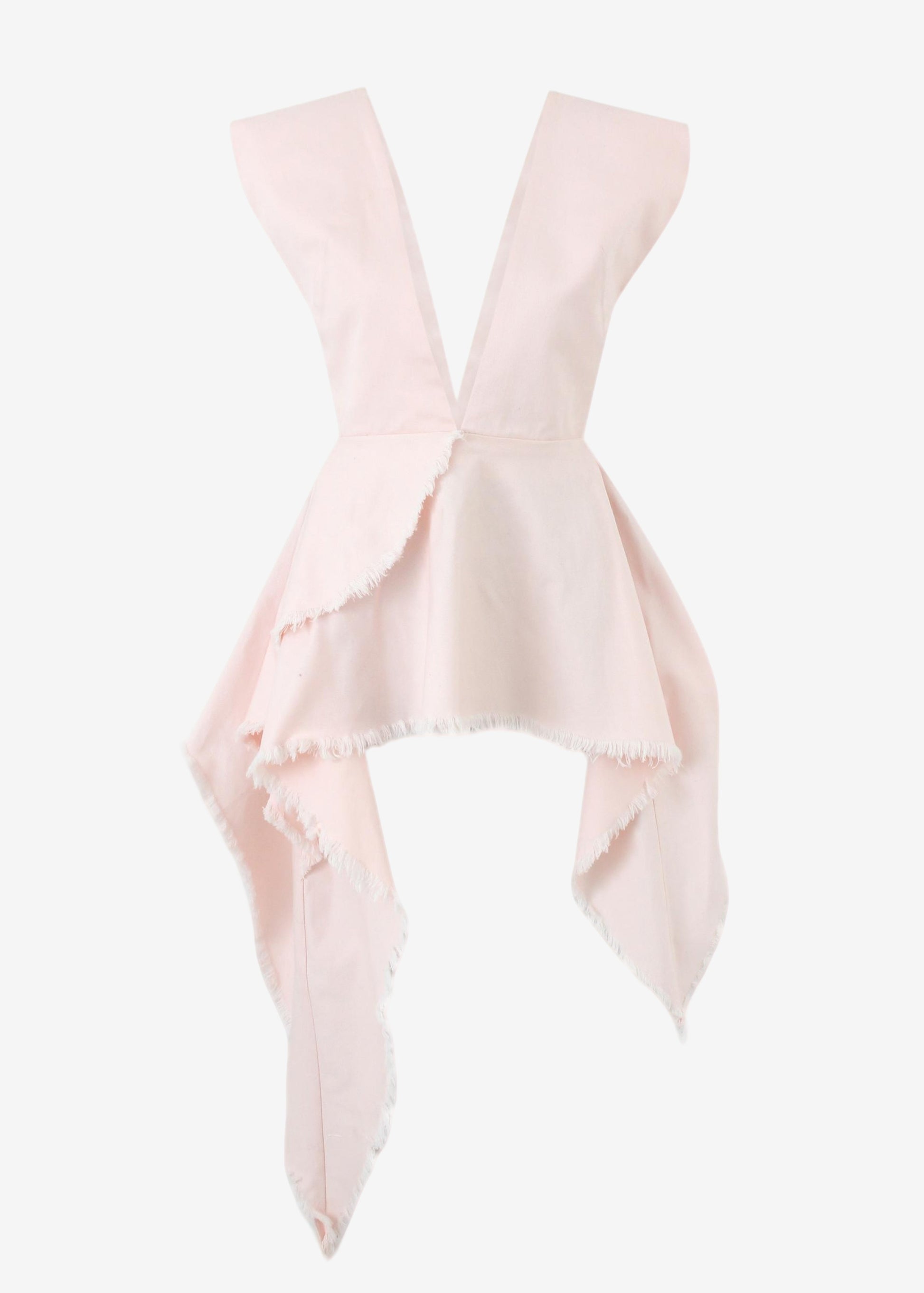Sleeveless, structured tailored vest with a front slit and a flared hemline.