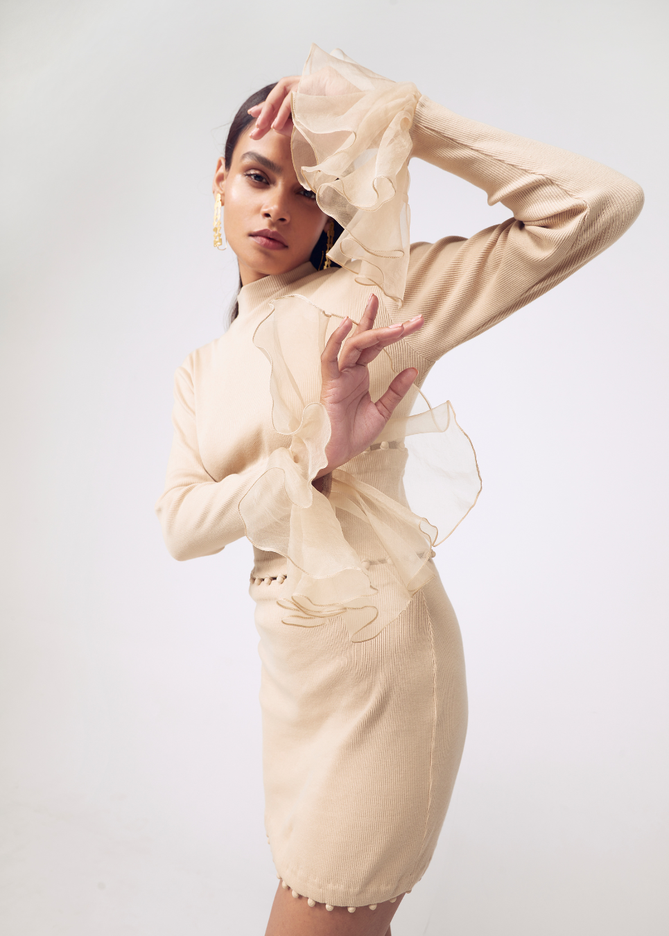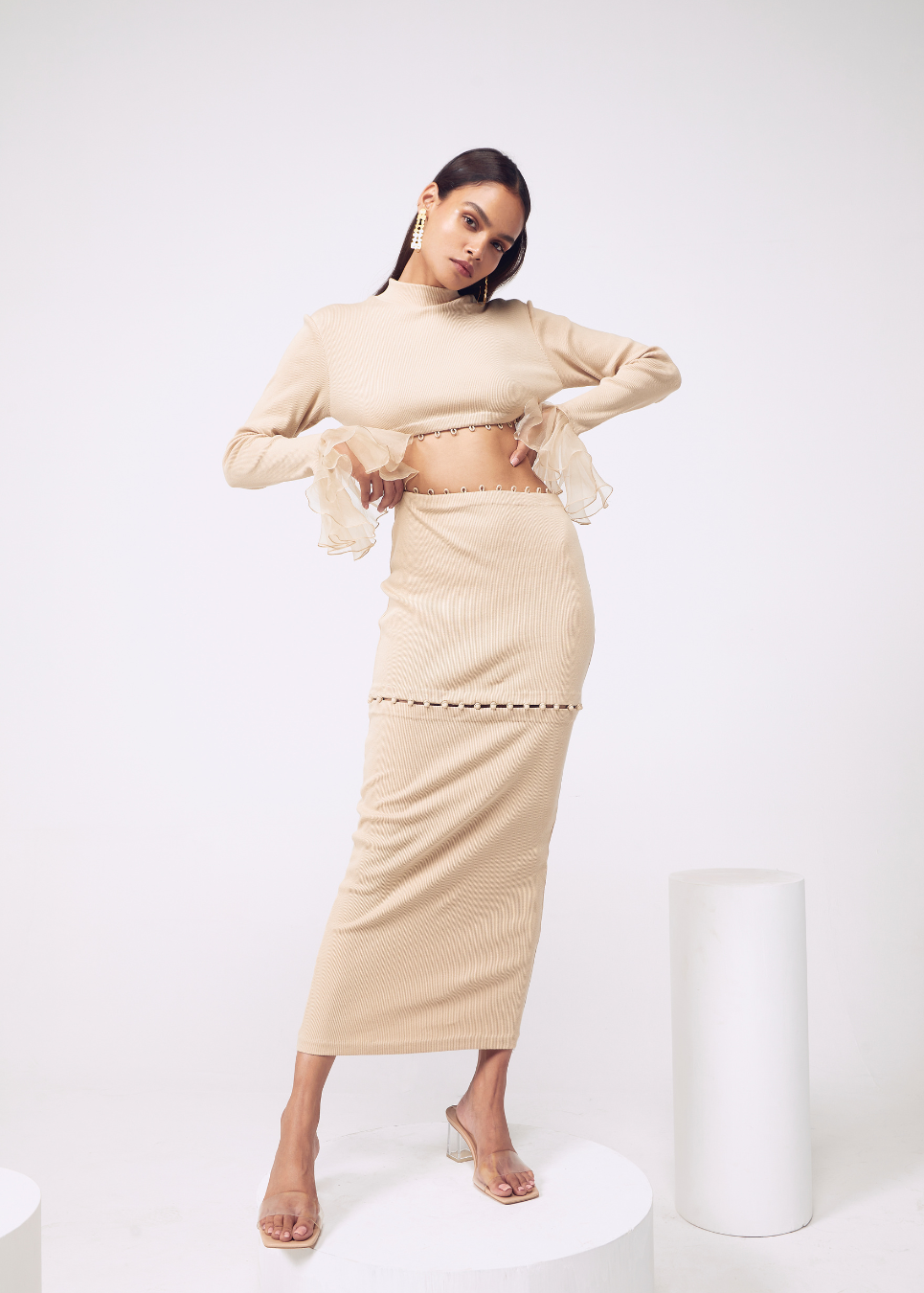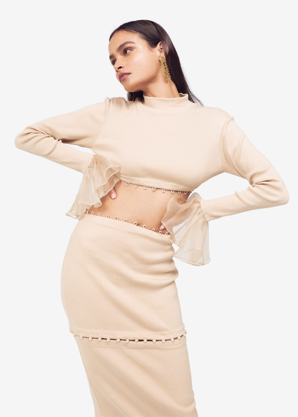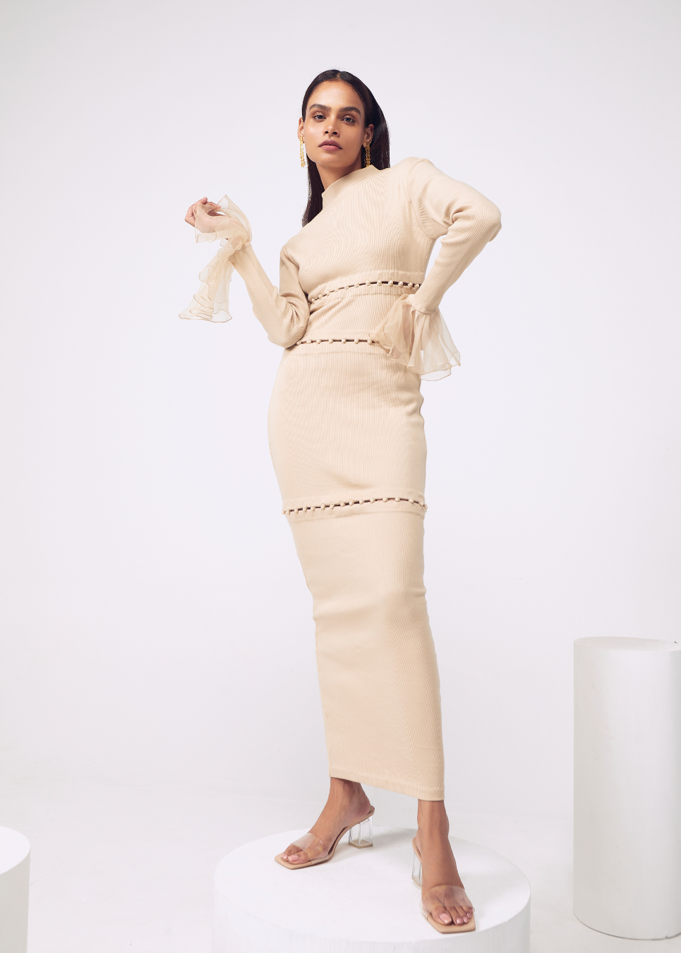 Ribbed bodycon dress with detatchables and ladder stitch detailing.
