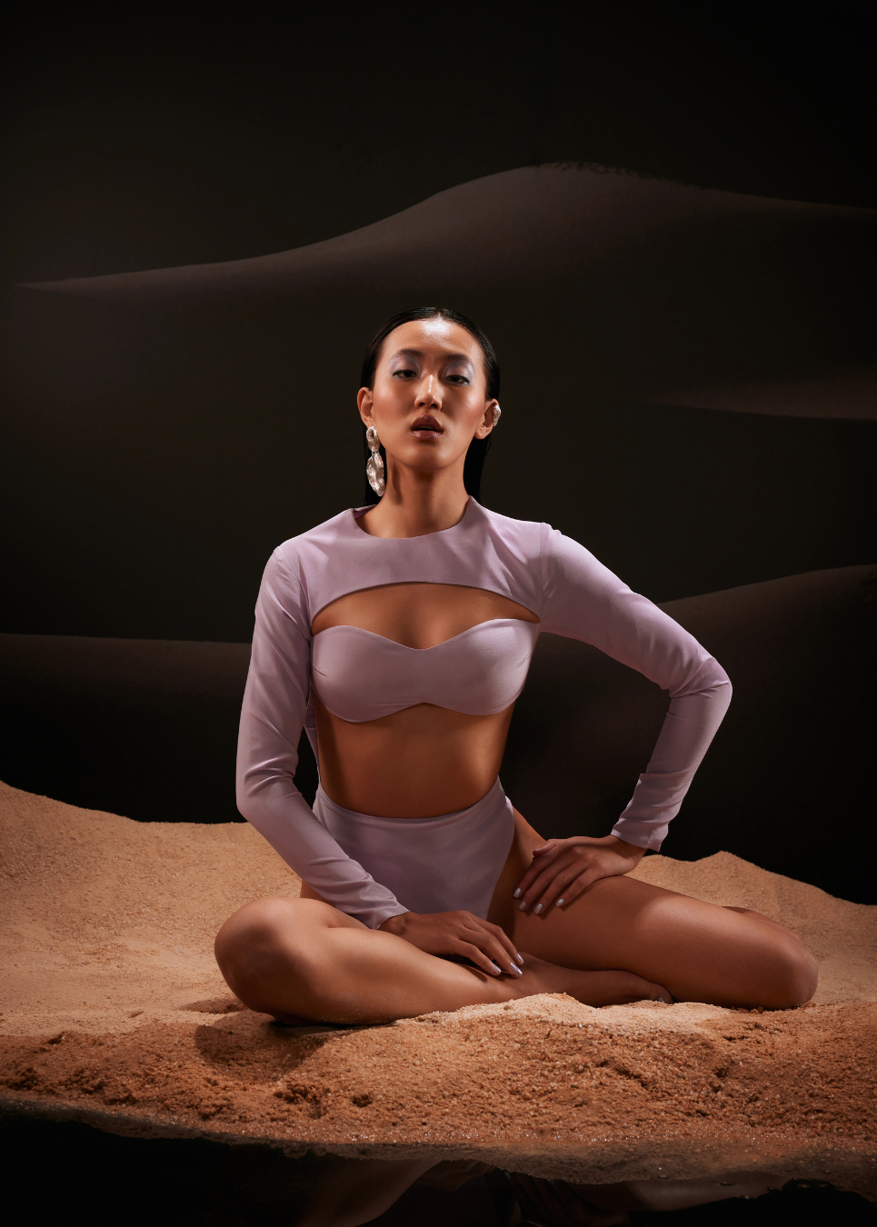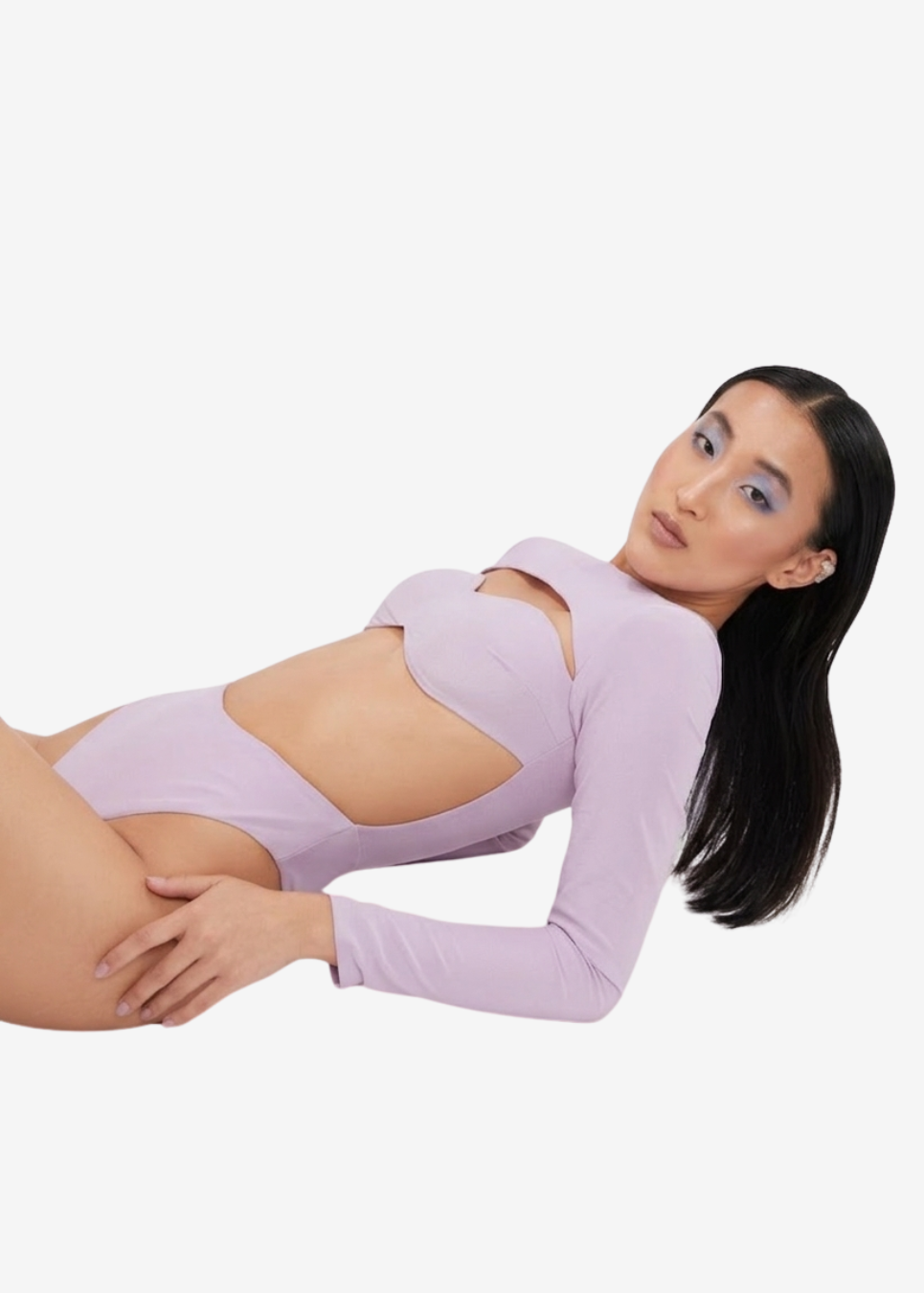 Asymmetrical long-sleeved cut-out bodysuit.