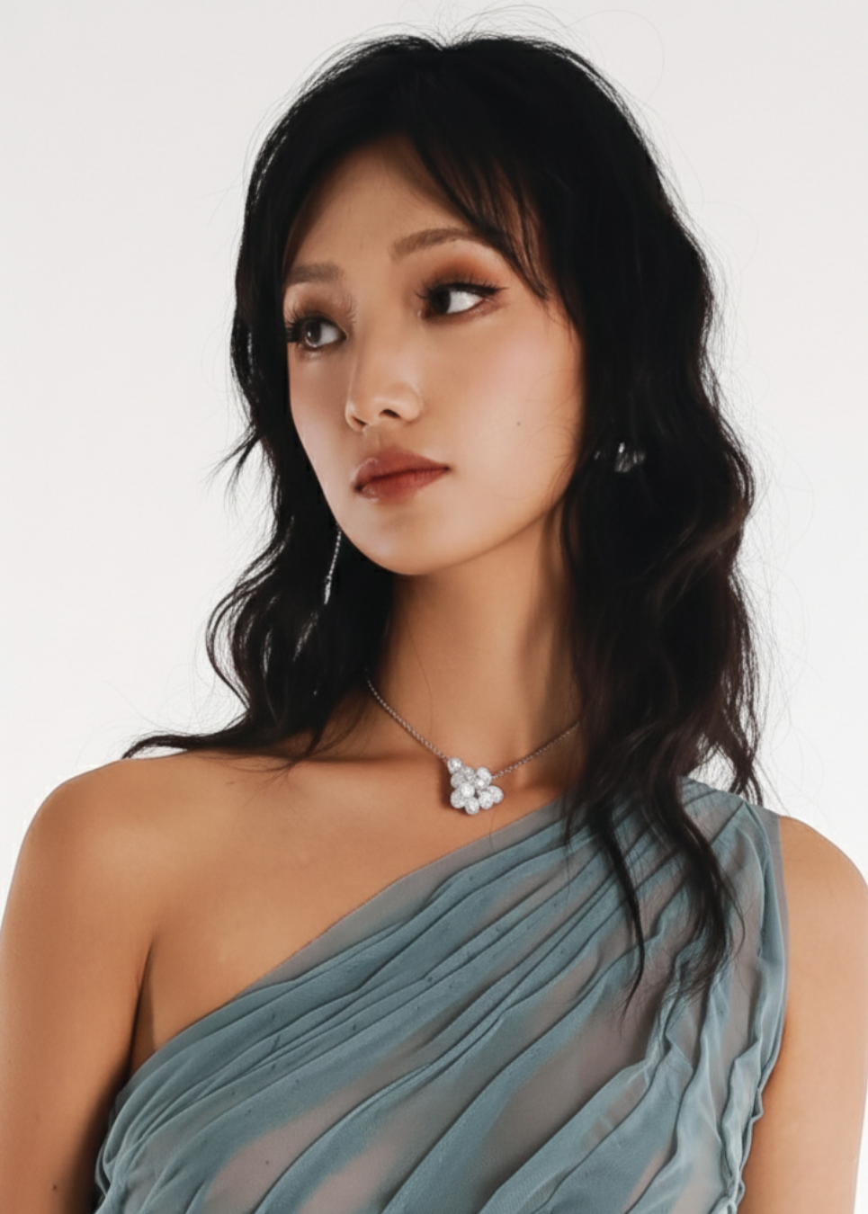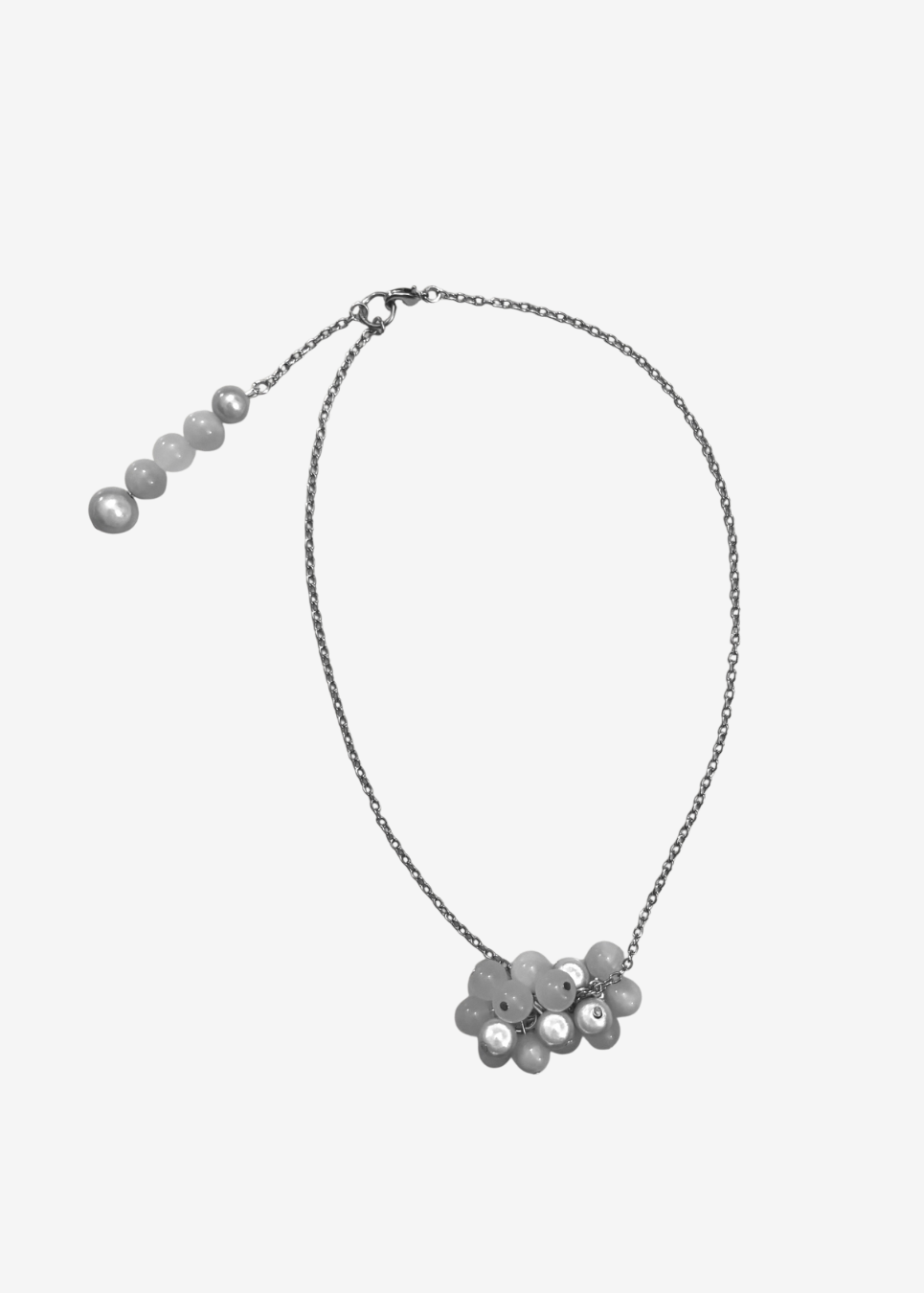 Medium-length chain necklace featuring a clustered pendant of pearls and jade beads designed to resemble bleached ocean corals.