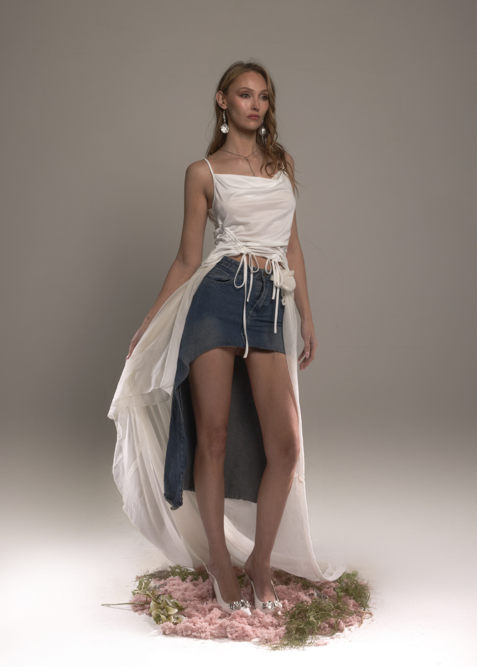 Jersey draped tank top with a relaxed, asymmetrical design.